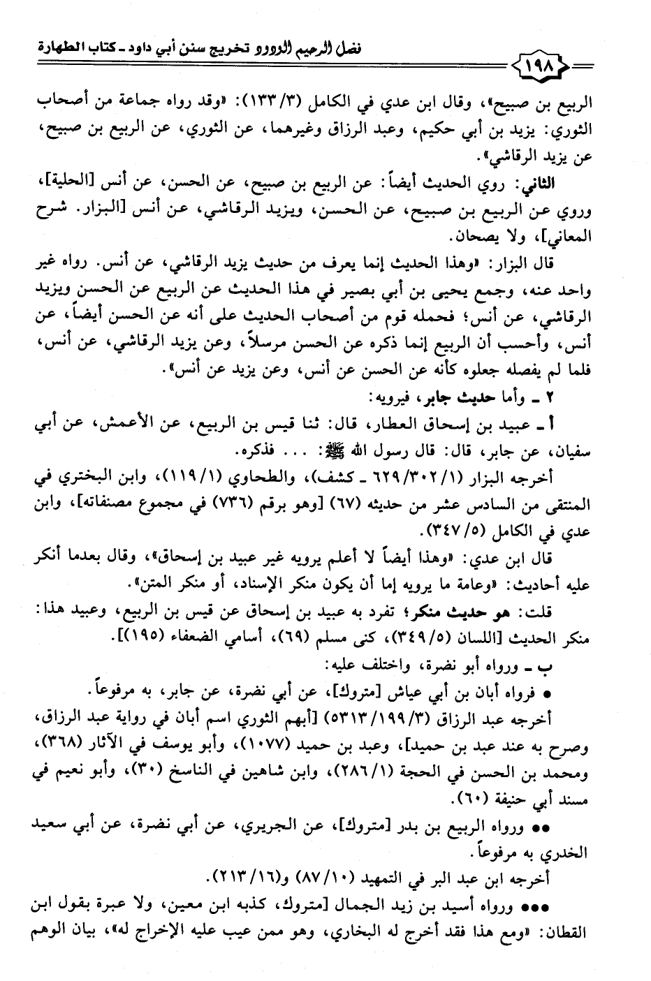 الثاني: روي الحديث أيضًا: عن الربيع بن صبيح، عن الحسن، عن أنس [الحلية]، وروي عن الربيع بن صبيح، عن الحسن، ويزيد الرقاشي، عن أنس [البزار. شرح المعاني]، ولا يصحان.