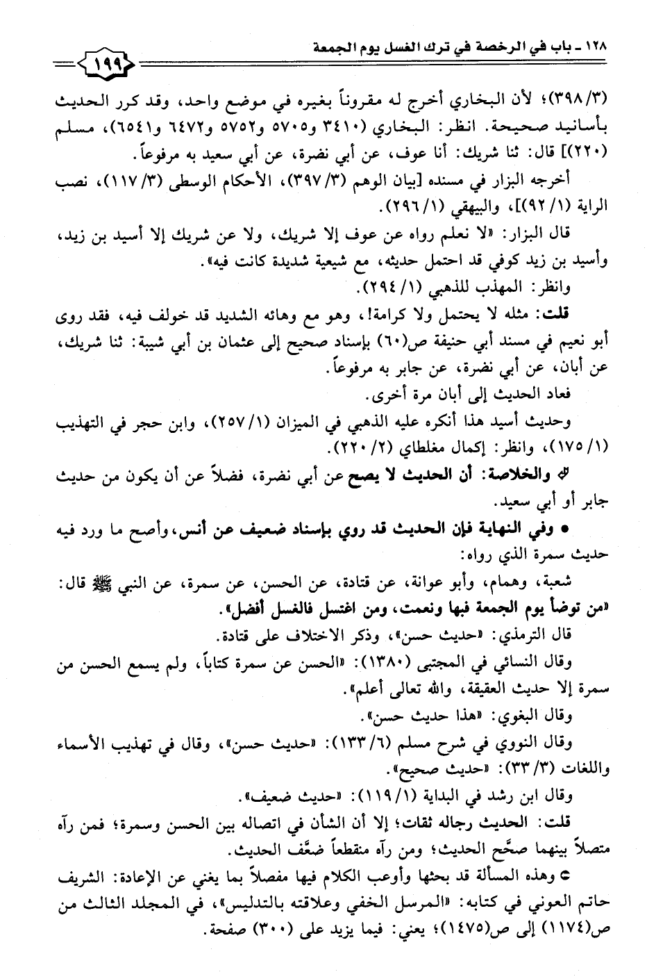 شعبة، وهمام، وأبو عوانة، عن قتادة، عن الحسن، عن سمرة، عن النبي - صلى الله عليه وسلم - قال: "من توضأ يوم الجمعة فيها ونعمت، ومن اغتسل فالغسل أفضل".