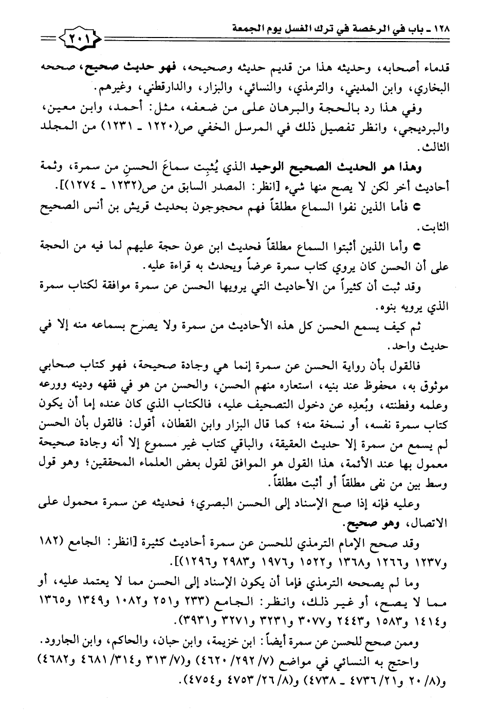 وهذا هو الحديث الصحيح الوحيد الذي يُثبِت سماعَ الحسنِ من سمرة، وثمة أحاديث آخر لكن لا يصح منها شيء [انظر: المصدر السابق من ص (١٢٣٢ - ١٢٧٤)].
