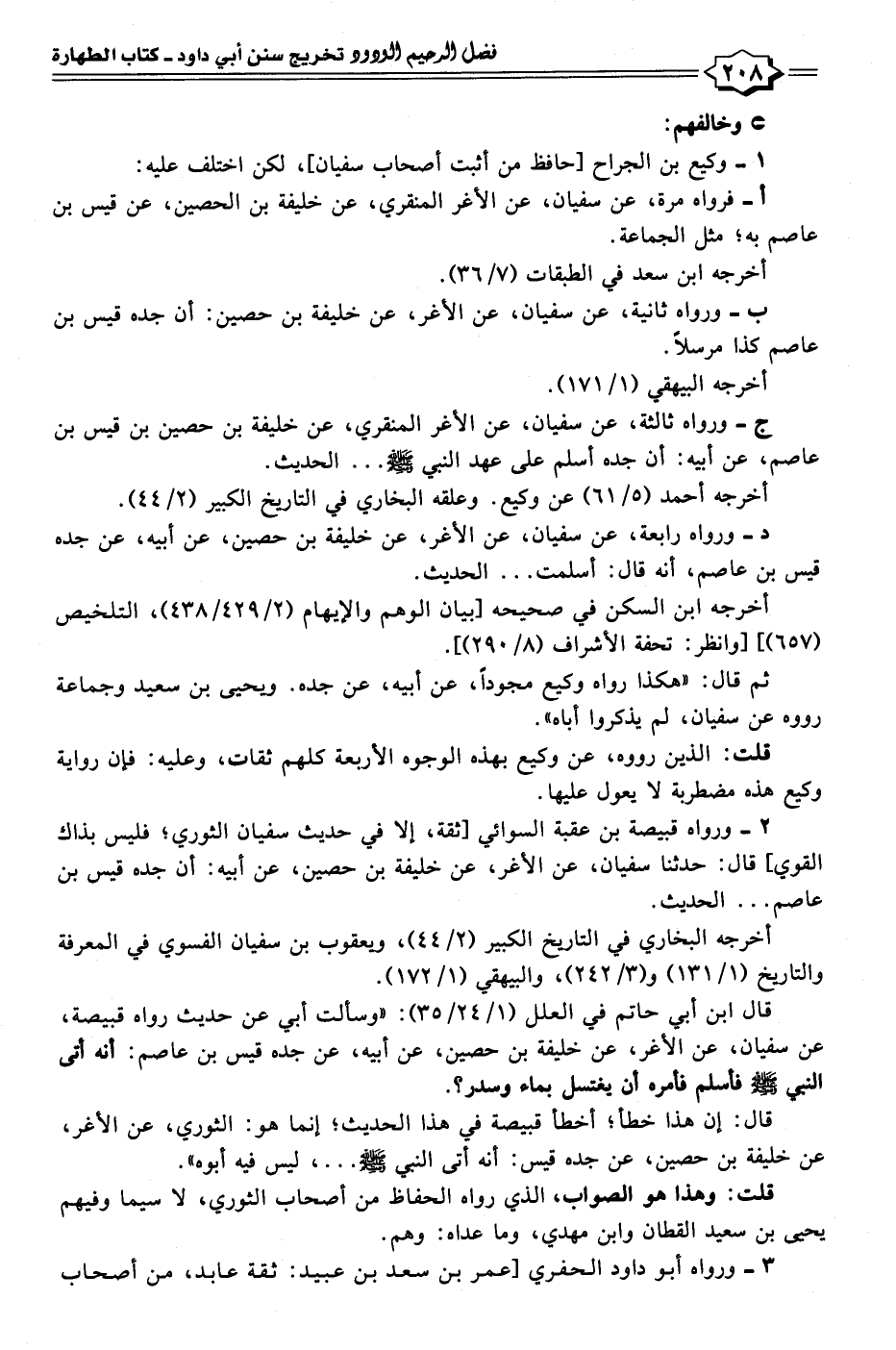 ج- ورواه ثالثة، عن سفيان، عن الأغر المنقري، عن خليفة بن حصين بن قيس بن عاصم، عن أبيه: أن جده أسلم على عهد النبي - صلى الله عليه وسلم - . . . الحديث.