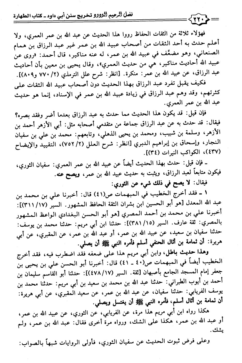فكيف يقبل تفرد عبد الرزاق بهذا الحديث دون أصحاب عبيد الله الثقات على كثرتهم، وقد وهم عبد الرزاق في زيادة عبيد الله بن عمر في الإسناد، إنما هو حديث عبد الله بن عمر العمري.