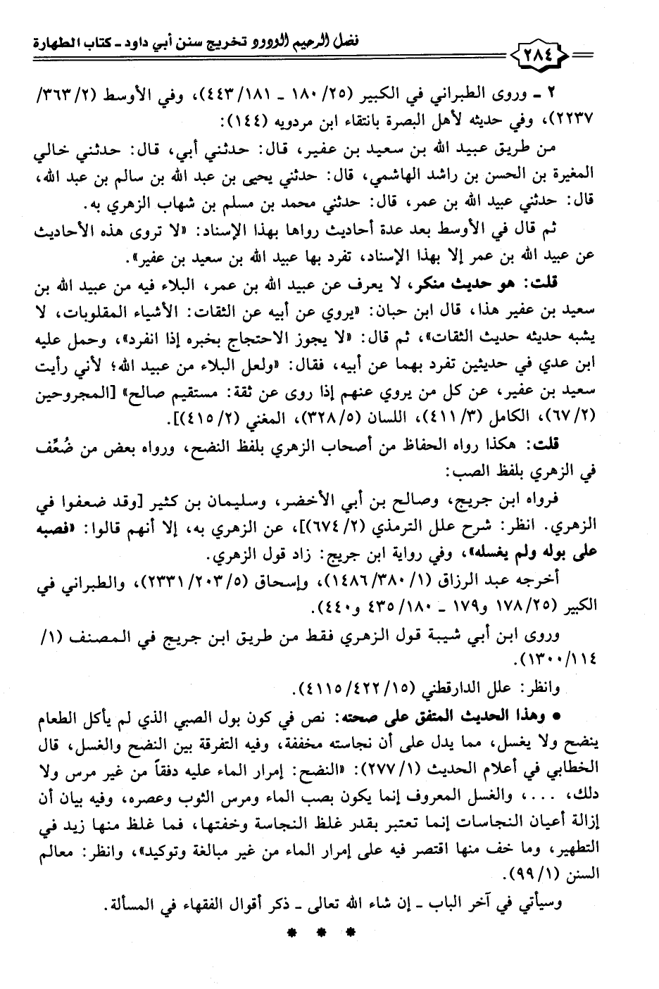 قلت: هكذا رواه الحفاظ من أصحاب الزهري بلفظ النضح، ورواه بعض من ضُعِّف في الزهري بلفظ الصب: