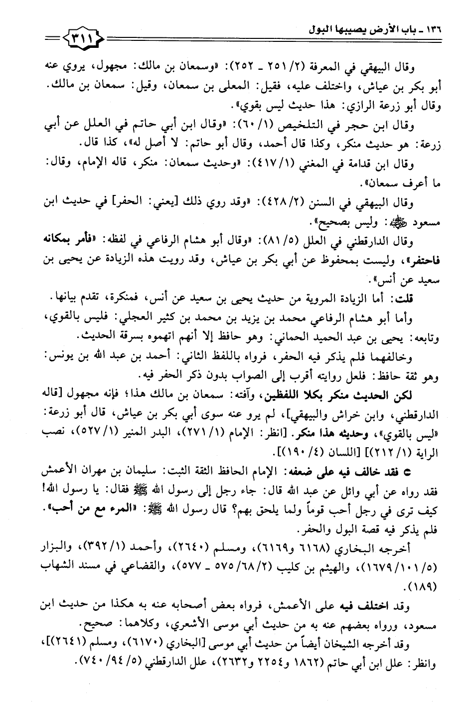 وخالفهما فلم يذكر فيه الحفر، فرواه باللفظ الثاني: أحمد بن عبد الله بن يونس: وهو ثقة حافظ: فلعل روايته أقرب إلى الصواب بدون ذكر الحفر فيه.