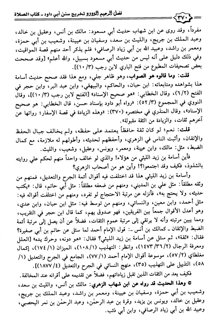 قلت: وما قالوه هو الصواب، وهو ظاهر جلي، ومع هذا فقد صحح حديث أسامة هذا بشواهده ومتابعاته: ابن حبان، والحاكم، والبيهقي، وابن عبد البر، وابن حجر في الفتح (٢/ ٦)، وقال الخطابي: "هو صحيح الإسناد" [الفتح لابن رجب (٣/ ١٠)]، وقال النووي في المجموع (٣/ ٥٢): "رواه أبو داود بإسناد حسن، قال الخطابي: هو صحيح الإسناد"، وقال المنذري في مختصره (٣٧٠): "وهذه الزيادة في قصة الإسفار؛ رواتها عن آخرهم ثقات، والزيادة من الثقة مقبولة".