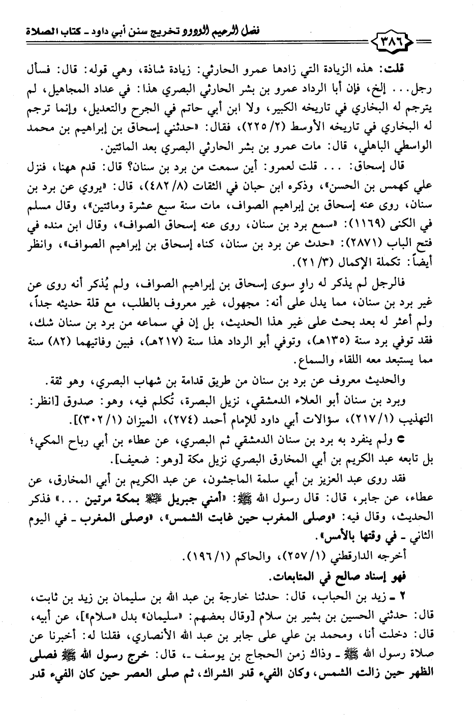 قلت: هذه الزيادة التي زادها عمرو الحارثي: زيادة شاذة، وهي قوله: قال: فسأل رجل. . . إلخ، فإن أبا الرداد عمرو بن بشر الحارثي البصري هذا: في عداد المجاهيل، لم يترجم له البخاري في تاريخه الكبير، ولا ابن أبي حاتم في الجرح والتعديل، وإنما ترجم له البخاري في تاريخه الأوسط (٢/ ٢٢٥)، فقال: "حدثني إسحاق بن إبراهيم بن محمد الواسطي الباهلي، قال: مات عمرو بن بشر الحارثي البصري بعد المائتين.