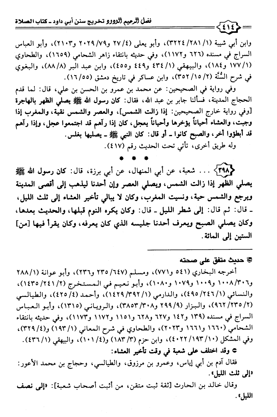 • وقد اختلف على شعبة في وقت تأخير العشاء: