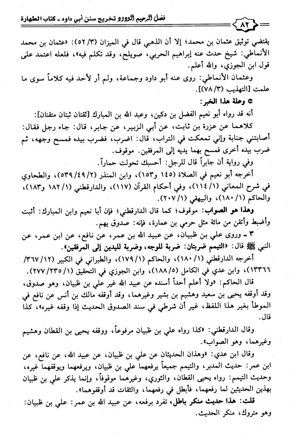 ٣ - وروى علي بن ظبيان، عن عبيد الله بن عمر، عن نافع، عن ابن عمر، عن النبي - صلى الله عليه وسلم - قال: "التيمم ضربتان: ضربة للوجه، وضربة لليدين إلى المرفقين".