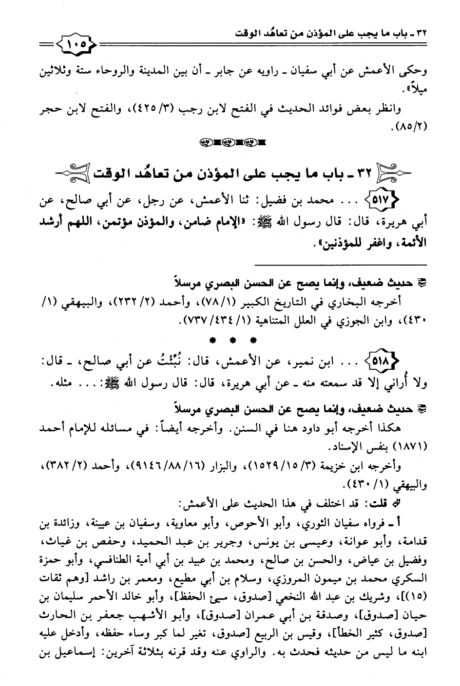 ٣٢ - باب ما يجب على المؤذن من تعاهُد الوقت