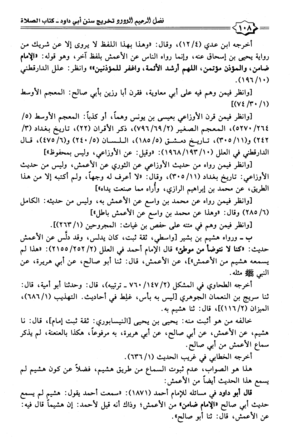 قال أبو داود في مسائله للإمام أحمد (١٨٧١): "سمعت أحمد يقول: هشيمٍ لم يسمع حديث أبي صالح "الإمام ضامن" من الأعمش؛ وذاك أنه قيل لأحمد: إن هشيمًا قال فيه: عن الأعمش، قال: ثنا أبو صالح".