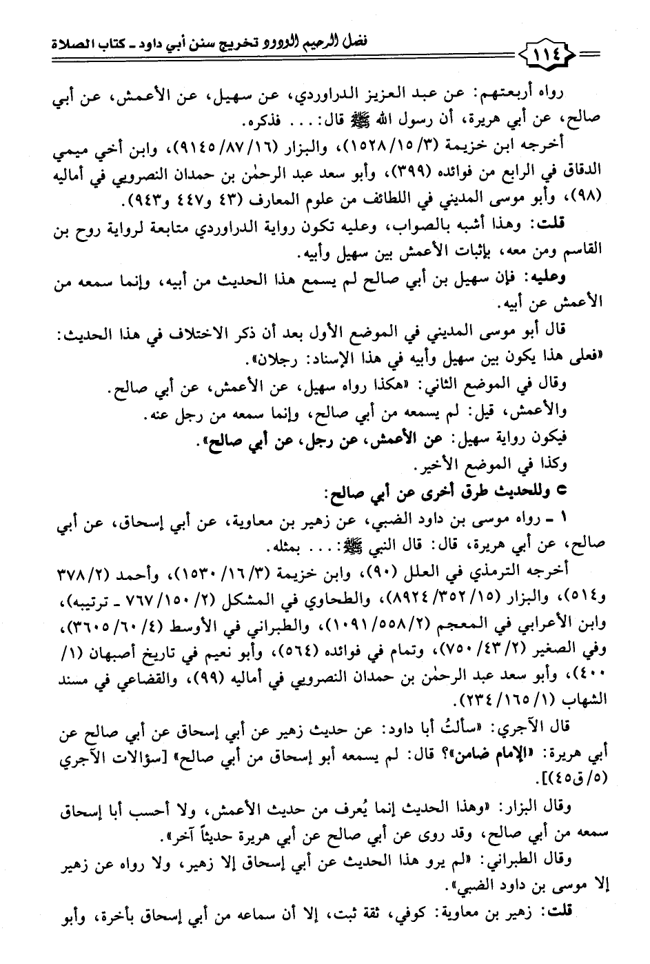 قال الآجري: "سألتُ أبا داود: عن حديث زهير عن أبي إسحاق عن أبي صالح عن أبي هريرة: "الإمام ضامن"؟ قال: لم يسمعه أبو إسحاق من أبي صالح" [سؤالات الآجري (٥/ ق ٤٥)].