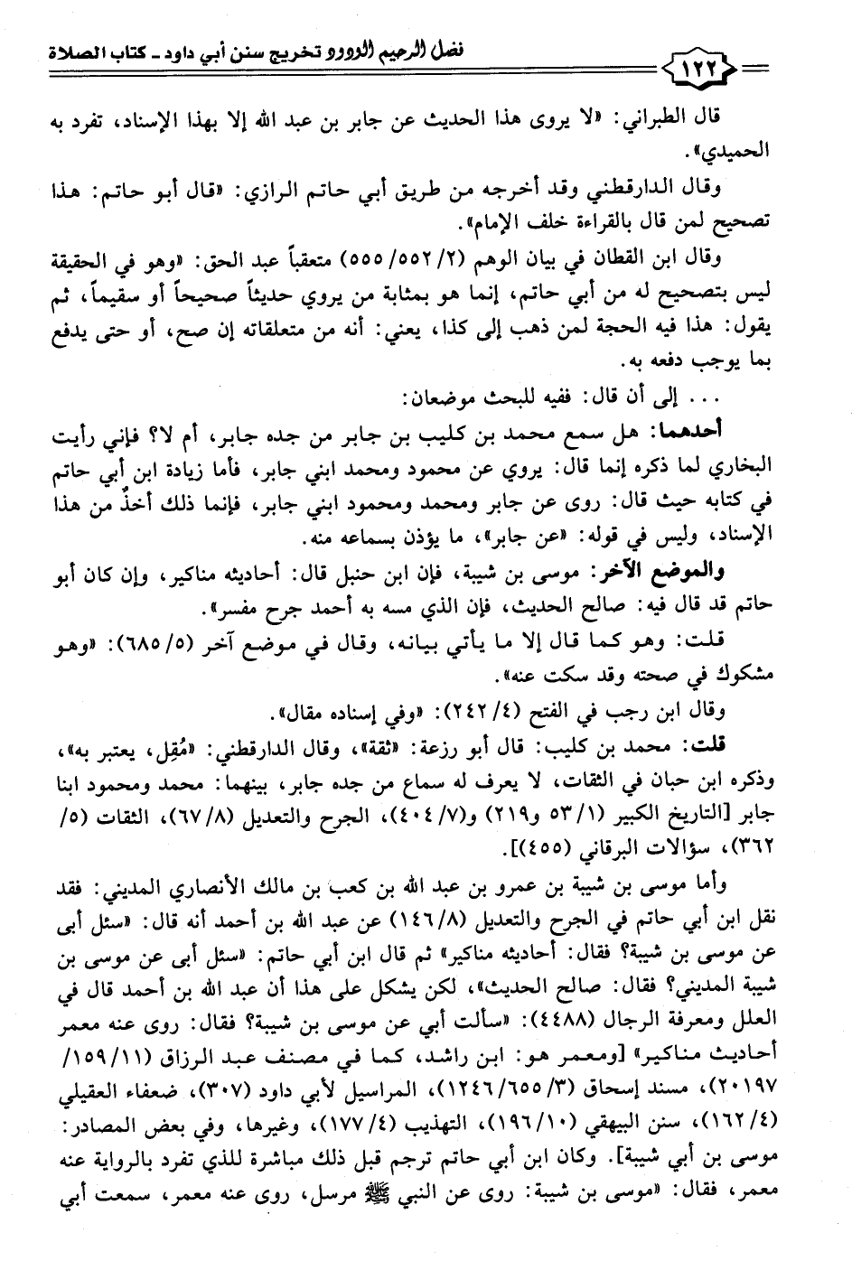 قلت: محمد بن كليب: قال أبو رزعة: "ثقة"، وقال الدارقطني: "مُقِل، يعتبر به"، وذكره ابن حبان في الثقات، لا يعرف له سماع من جده جابر، بينهما: محمد ومحمود ابنا جابر [التاريخ الكبير (١/ ٥٣ و ٢١٩) و (٧/ ٤٠٤)، الجرح والتعديل (٨/ ٦٧)، الثقات (٥/ ٣٦٢)، سؤالات البرقاني (٤٥٥)].