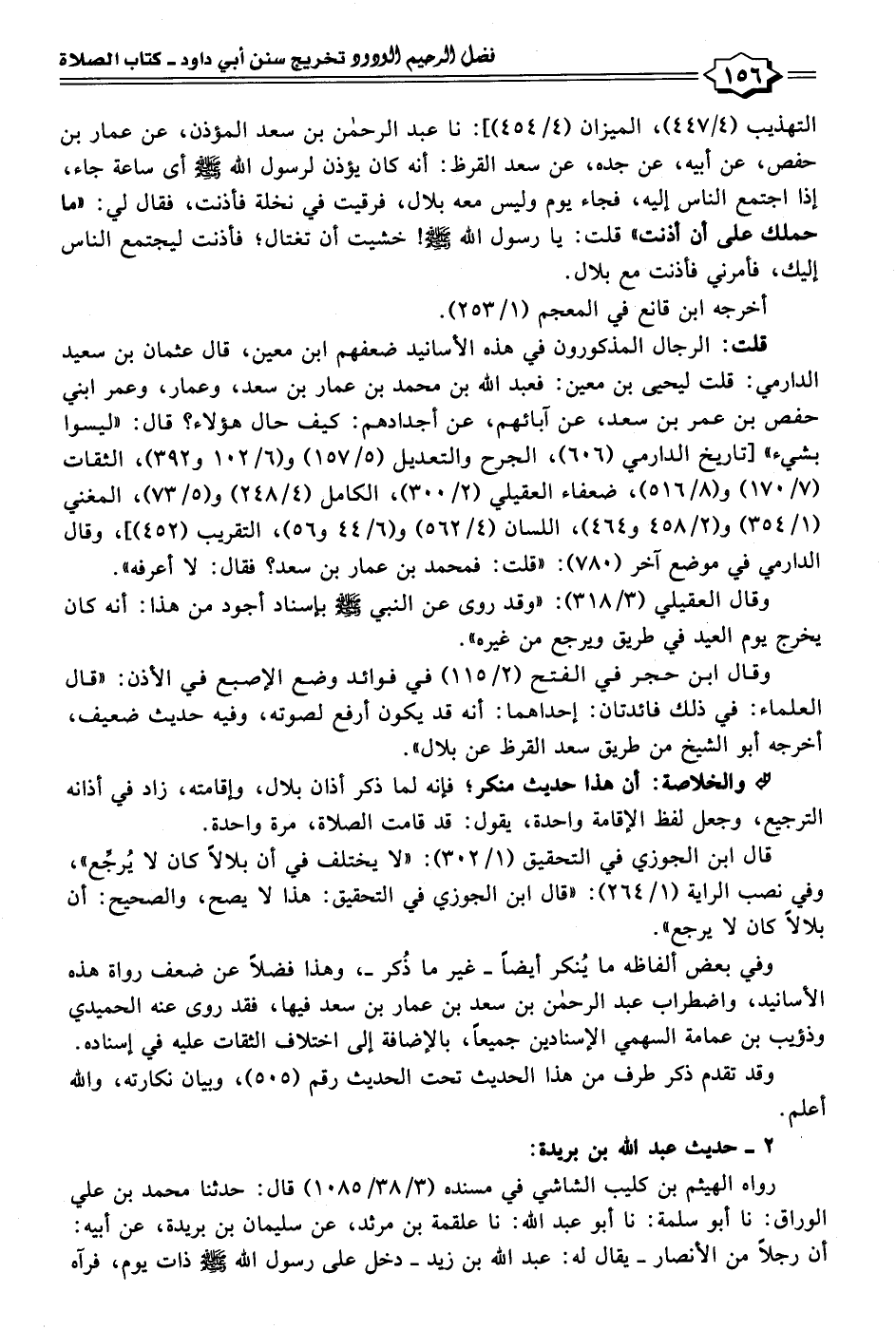 قال ابن الجوزي في التحقيق (١/ ٣٠٢): "لا يختلف في أن بلالًا كان لا يُرجِّع"، وفي نصب الراية (١/ ٢٦٤): "قال ابن الجوزي في التحقيق: هذا لا يصح، والصحيح: أن بلالًا كان لا يرجع".
