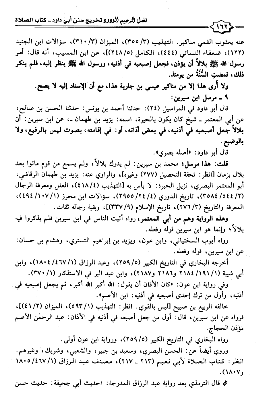 قلت: هذا مرسل؛ محمد بن سيرين: لم يدرك بلالًا، ولم يسمع من قوم ماتوا بعد بلال بزمان [انظر: تحفة التحصيل (٢٧٧) وغيره]، والراوي عنه: يزيد بن طهمان الرقاشي، أبو المعتمر البصري، نزيل الحيرة: لا بأس به [التهذيب (٤/ ٤١٨)، العلل ومعرفة الرجال (٢/ ٥٤٤/ ٣٥٨٤)، تاريخ الدوري (٤/ ٢٤/ ٢٩٥٥)، سؤالات ابن محرز (١/ ١٠٧/ ٤٩٤)، المعرفة والتاريخ (٣/ ٢٧٦)، تاريخ الإسلام (٩/ ٣٣٧)]، وبقية رجاله ثقات.