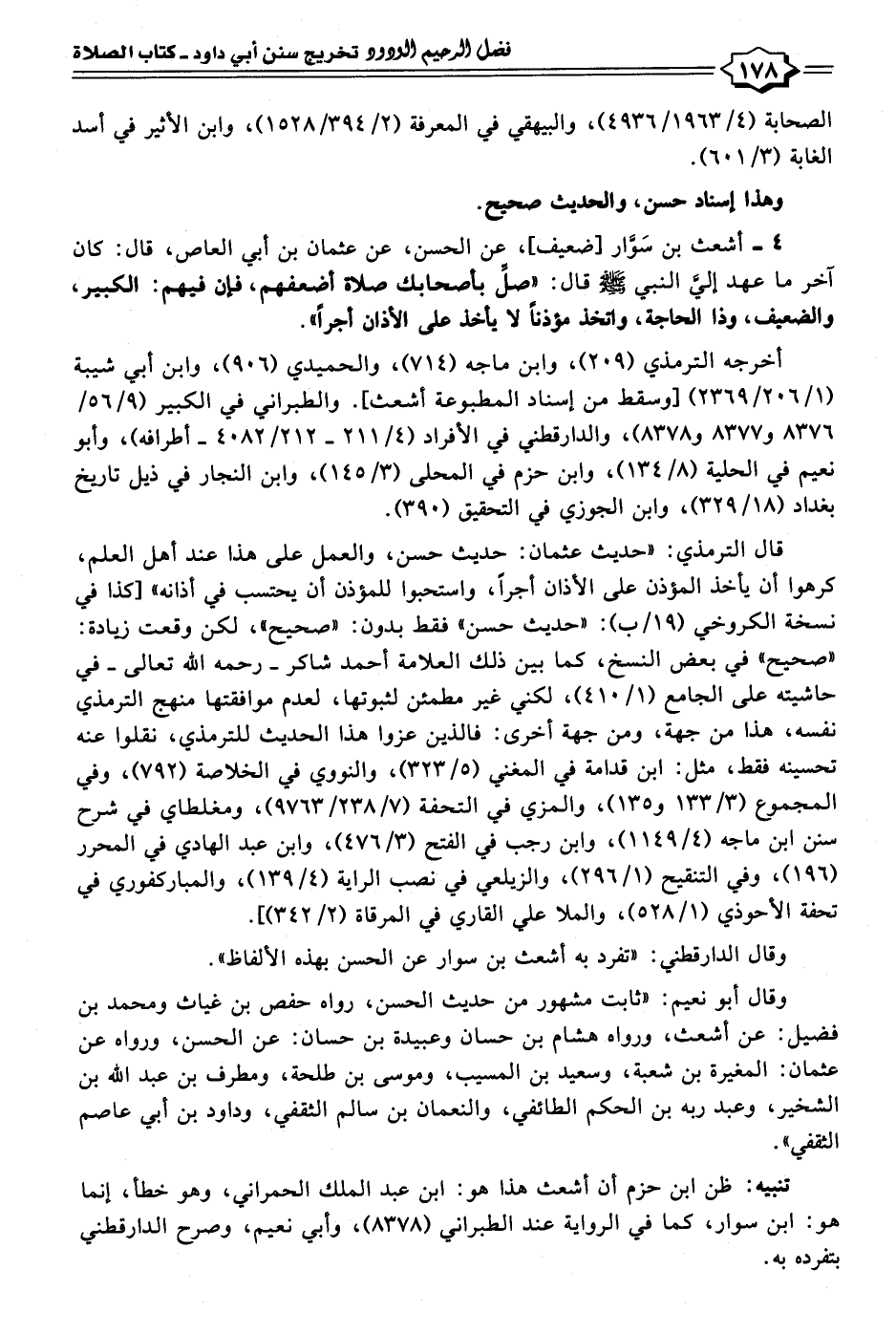 وقال أبو نعيم: "ثابت مشهور من حديث الحسن، رواه حفص بن غياث ومحمد بن فضيل: عن أشعث، ورواه هشام بن حسان وعبيدة بن حسان: عن الحسن، ورواه عن عثمان: المغيرة بن شعبة، وسعيد بن المسيب، وموسى بن طلحة، ومطرف بن عبد الله بن الشخير، وعبد ربه بن الحكم الطائفي، والنعمان بن سالم الثقفي، وداود بن أبي عاصم الثقفي".