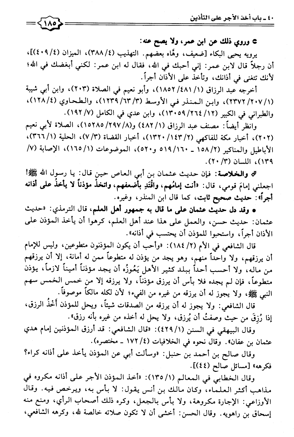 • وقد دل حديث عثمان على ما قال به جمهور أهل العلم، قال الترمذي: "حديث عثمان: حديث حسن، والعمل على هذا عند أهل العلم، كرهوا أن يأخذ المؤذن على الأذان أجرًا، واستحبوا للمؤذن أن يحتسب في أذانه".