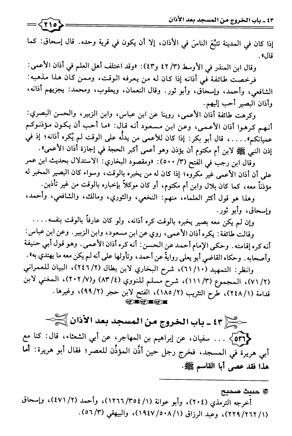 ٤٣ - باب الخروج من المسجد بعد الأذان