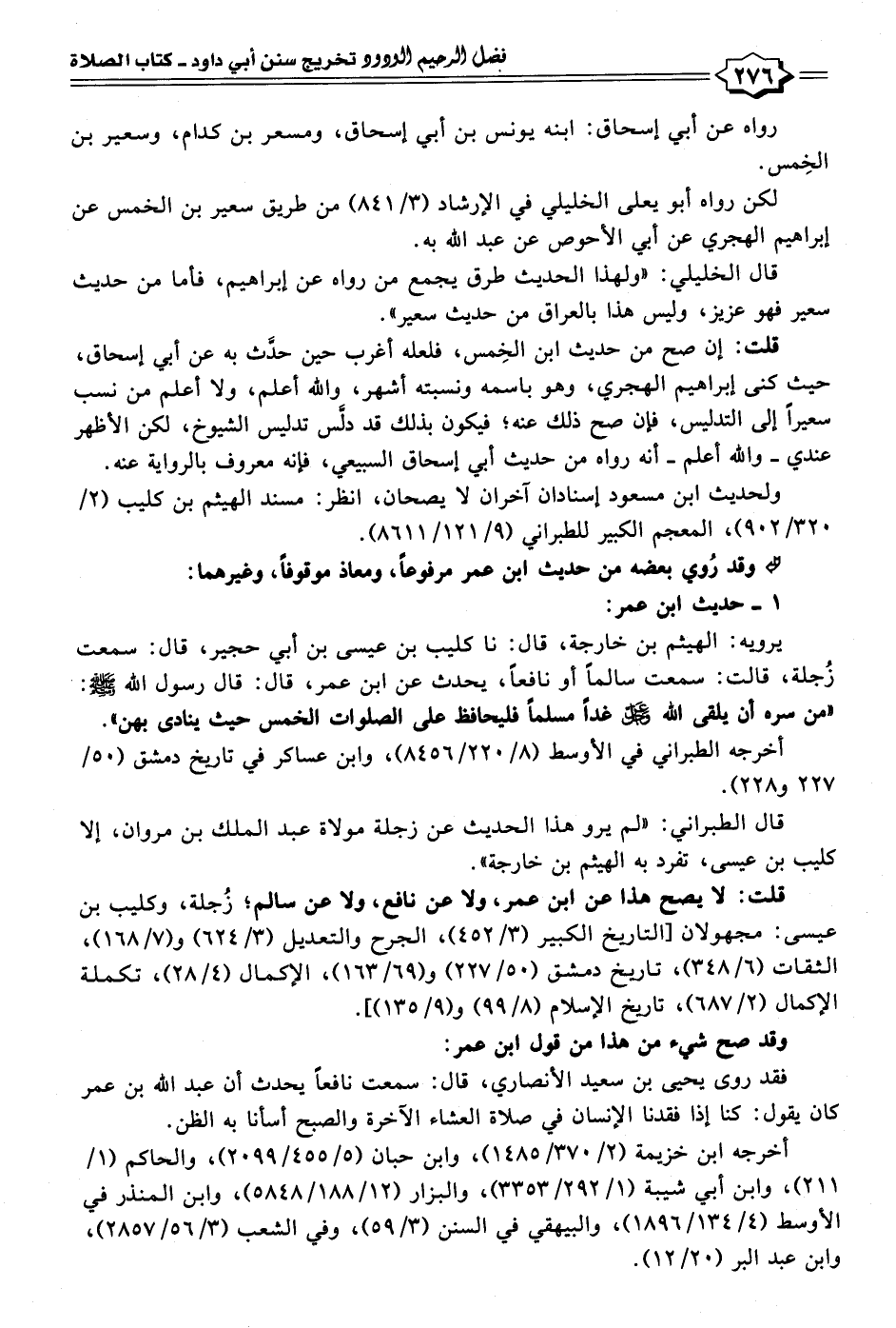 قلت: لا يصح هذا عن ابن عمر، ولا عن نافع، ولا عن سالم؛ زُجلة، وكليب بن عيسى: مجهولان [التاريخ الكبير (٣/ ٤٥٢)، الجرح والتعديل (٣/ ٦٢٤) و (٧/ ١٦٨)، الثقات (٦/ ٣٤٨)، تاريخ دمشق (٥٠/ ٢٢٧) و (٦٩/ ١٦٣)، الإكمال (٤/ ٢٨)، تكملة الإكمال (٢/ ٦٨٧)، تاريخ الإسلام (٨/ ٩٩) و (٩/ ١٣٥)].