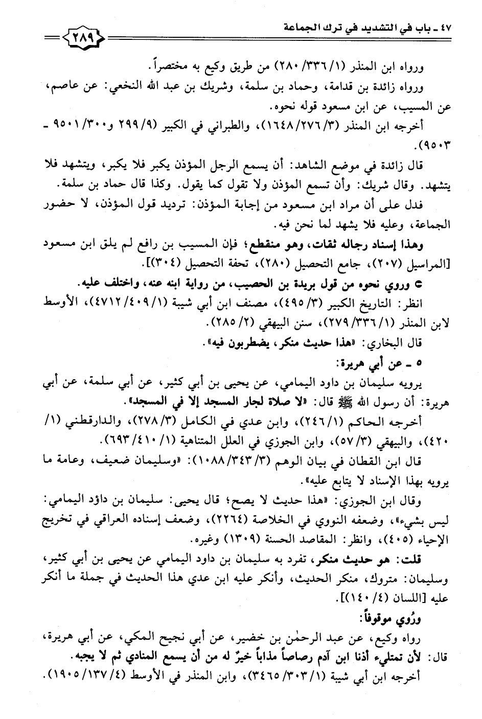 يرويه سليمان بن داود اليمامي، عن يحيى بن أبي كثير، عن أبي سلمة، عن أبي هريرة: أن رسول الله - صلى الله عليه وسلم - قال: "لا صلاة لجار المسجد إلا في المسجد".