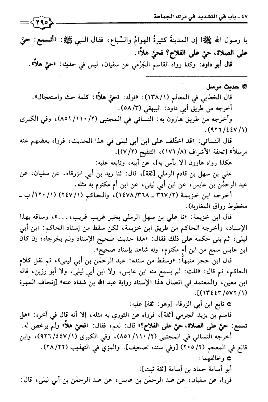 قال أبو داود: وكذا رواه القاسم الجَرْمي عن سفيان، ليس في حديثه: "حيَّ هلًا".