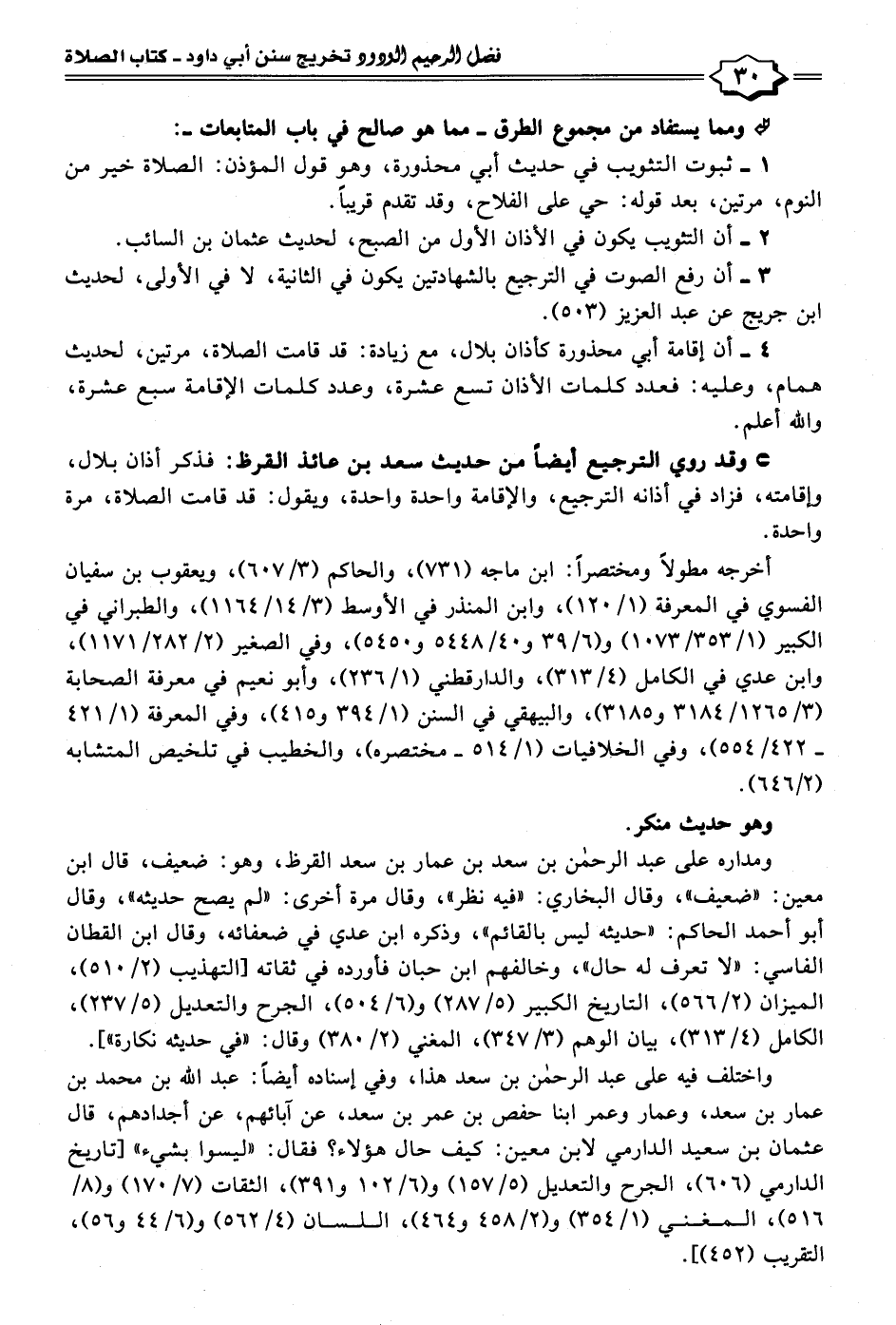 ٣ - أن رفع الصوت في الترجيع بالشهادتين يكون في الثانية، لا في الأولى، لحديث ابن جريج عن عبد العزيز (٥٠٣).