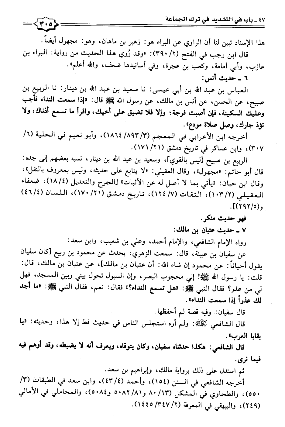 ٧ - حديث عتبان بن مالك: