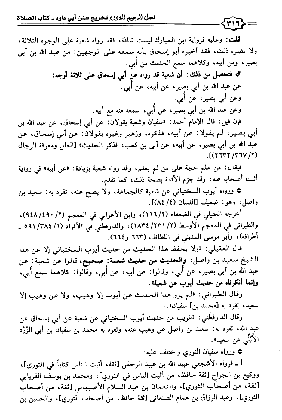 قلت: وعليه فرواية ابن المبارك ليست شاذة، فقد رواه شعبة على الوجوه الثلاثة، ولا يضره ذلك، فقد أخبره أبو إسحاق بأنه سمعه على الوجهين: من عبد الله بن أبي بصير، ومن أبيه، وكلاهما سمع الحديث من أُبي.
