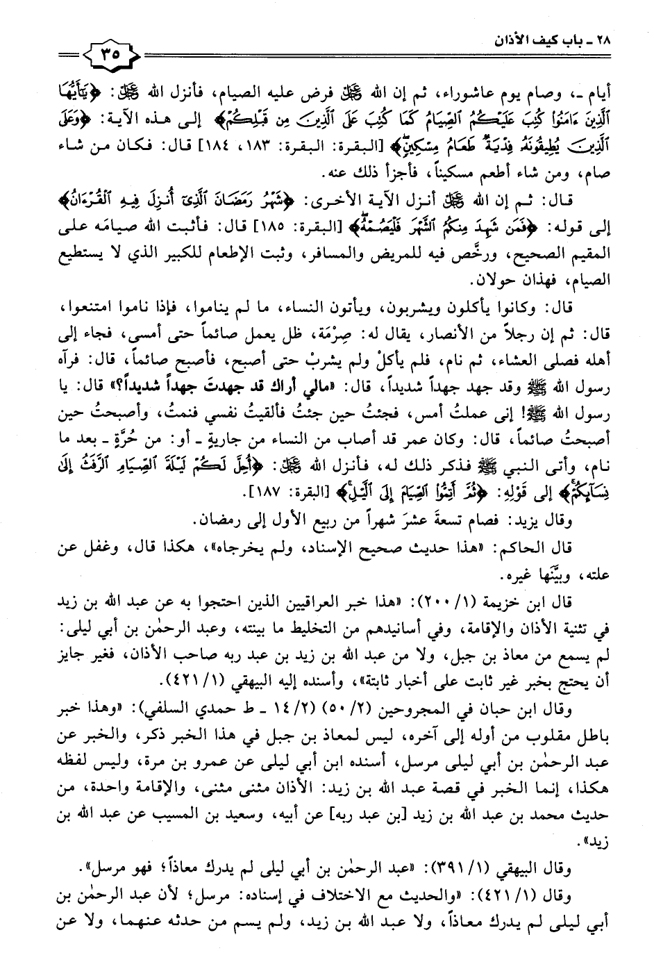قال الحاكم: "هذا حديث صحيح الإسناد، ولم يخرجاه"، هكذا قال، وغفل عن علته، وبيَّنَها غيره. قال ابن خزيمة (١/ ٢٠٠): "هذا خبر العراقيين الذين احتجوا به عن عبد الله بن زيد في تثنية الأذان والإقامة، وفي أسانيدهم من التخليط ما بينته، وعبد الرحمن بن أبي ليلى: لم يسمع من معاذ بن جبل، ولا من عبد الله بن زيد بن عبد ربه صاحب الأذان، فغير جايز أن يحتج بخبر غير ثابت على أخبار ثابتة"، وأسنده إليه البيهقي (١/ ٤٢١).