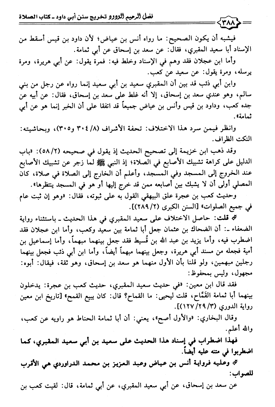 فيشبه أن يكون الصحيح: ما رواه أنس بن عياض؛ لأن داود بن قيس أسقط من الإسناد أبا سعيد المقبري، فقال: عن سعد بن إسحاق عن أبي ثمامة.