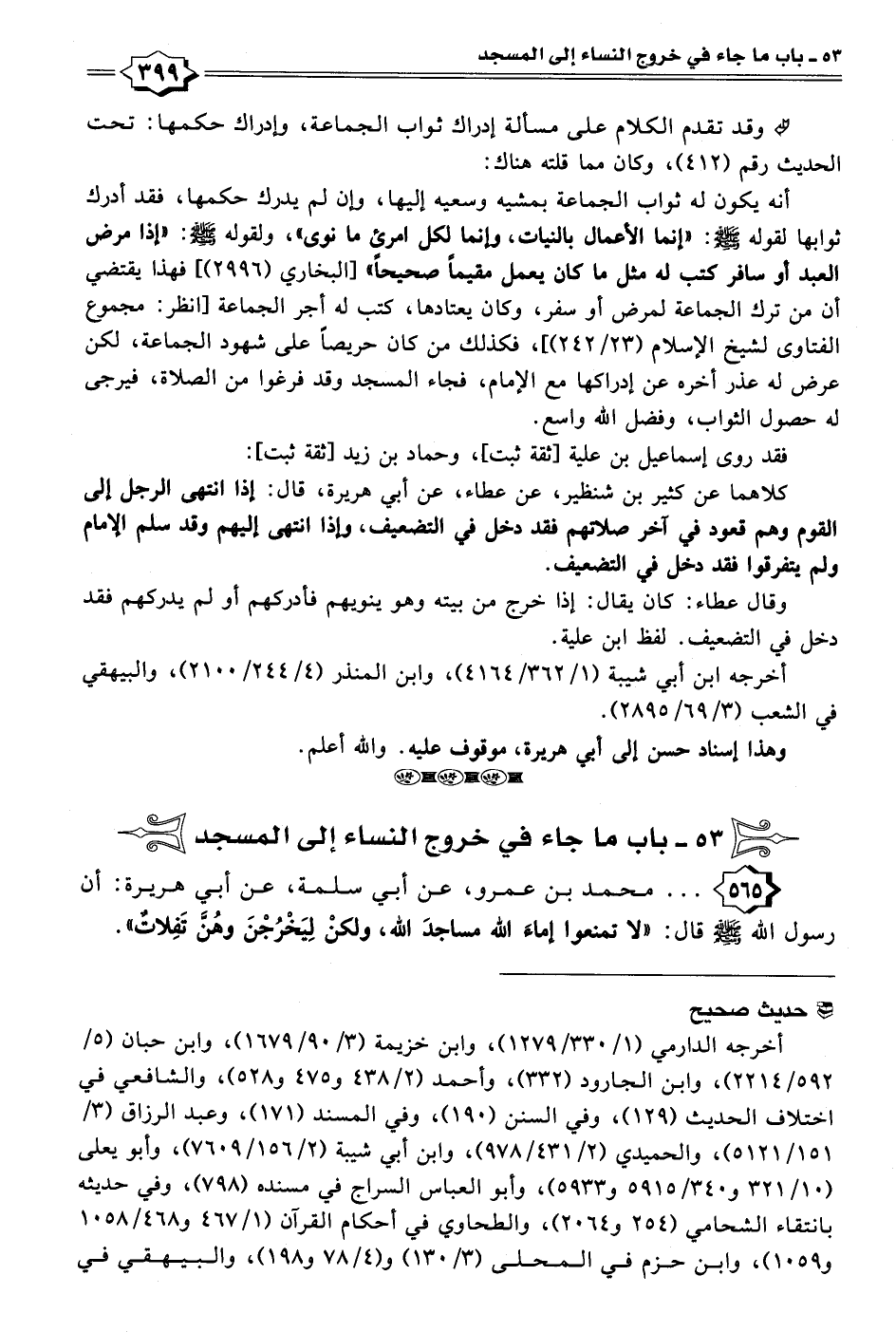 ٥٣ - باب ما جاء في خروج النساء إلى المسجد