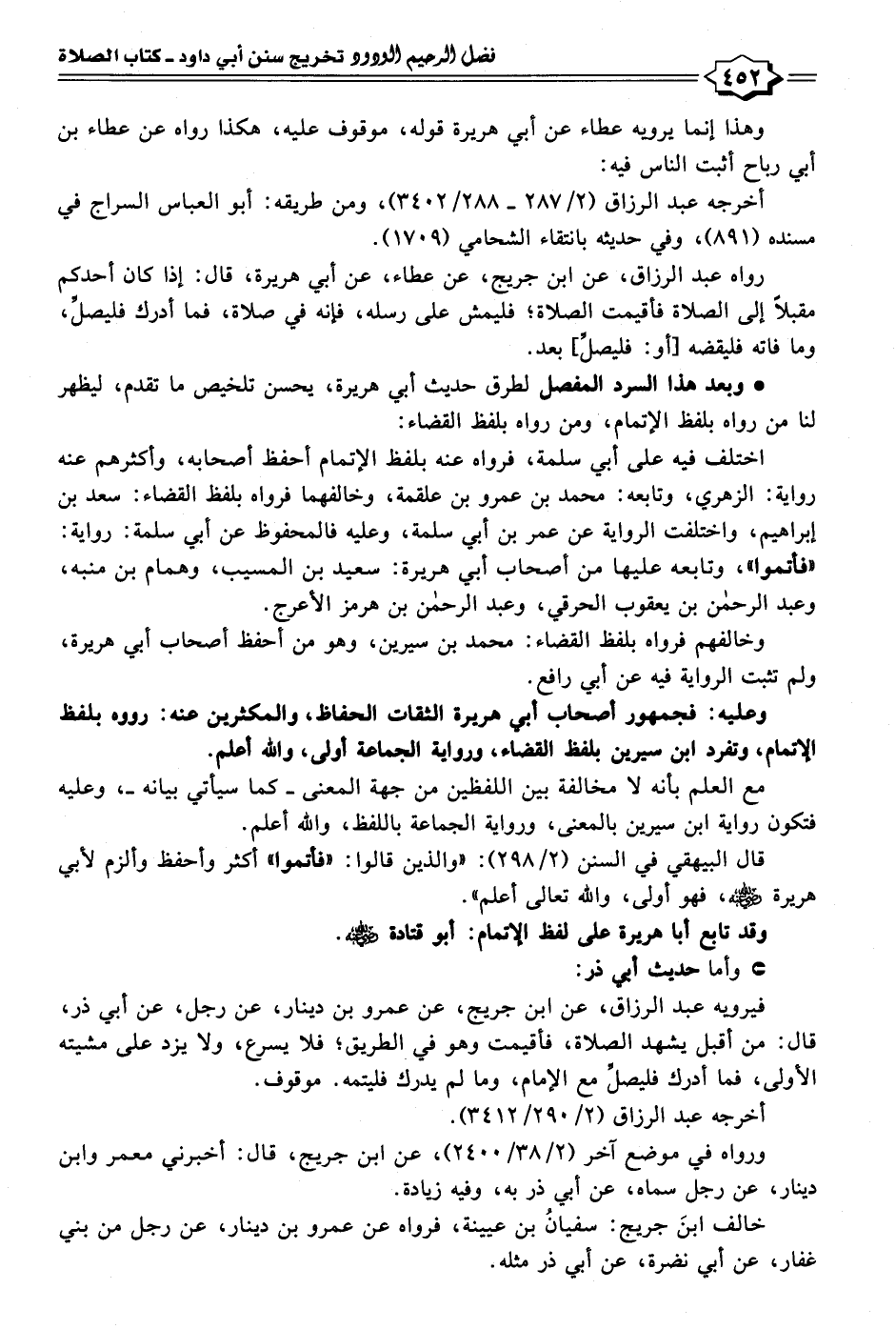 وعليه: فجمهور أصحاب أبي هريرة الثقات الحفاظ، والمكثرين عنه: رووه بلفظ الإتمام، وتفرد ابن سيرين بلفظ القضاء، ورواية الجماعة أولى، والله أعلم.