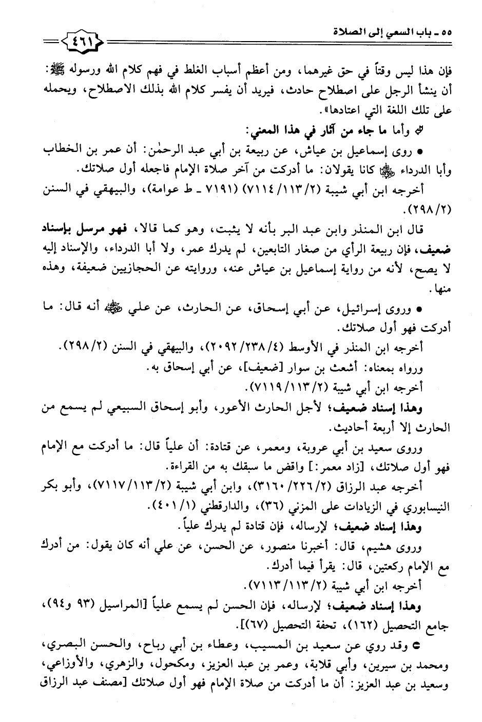 • وروى إسرائيل، عن أبي إسحاق، عن الحارث، عن علي - رضي الله عنه - أنه قال: ما أدركت فهو أول صلاتك.