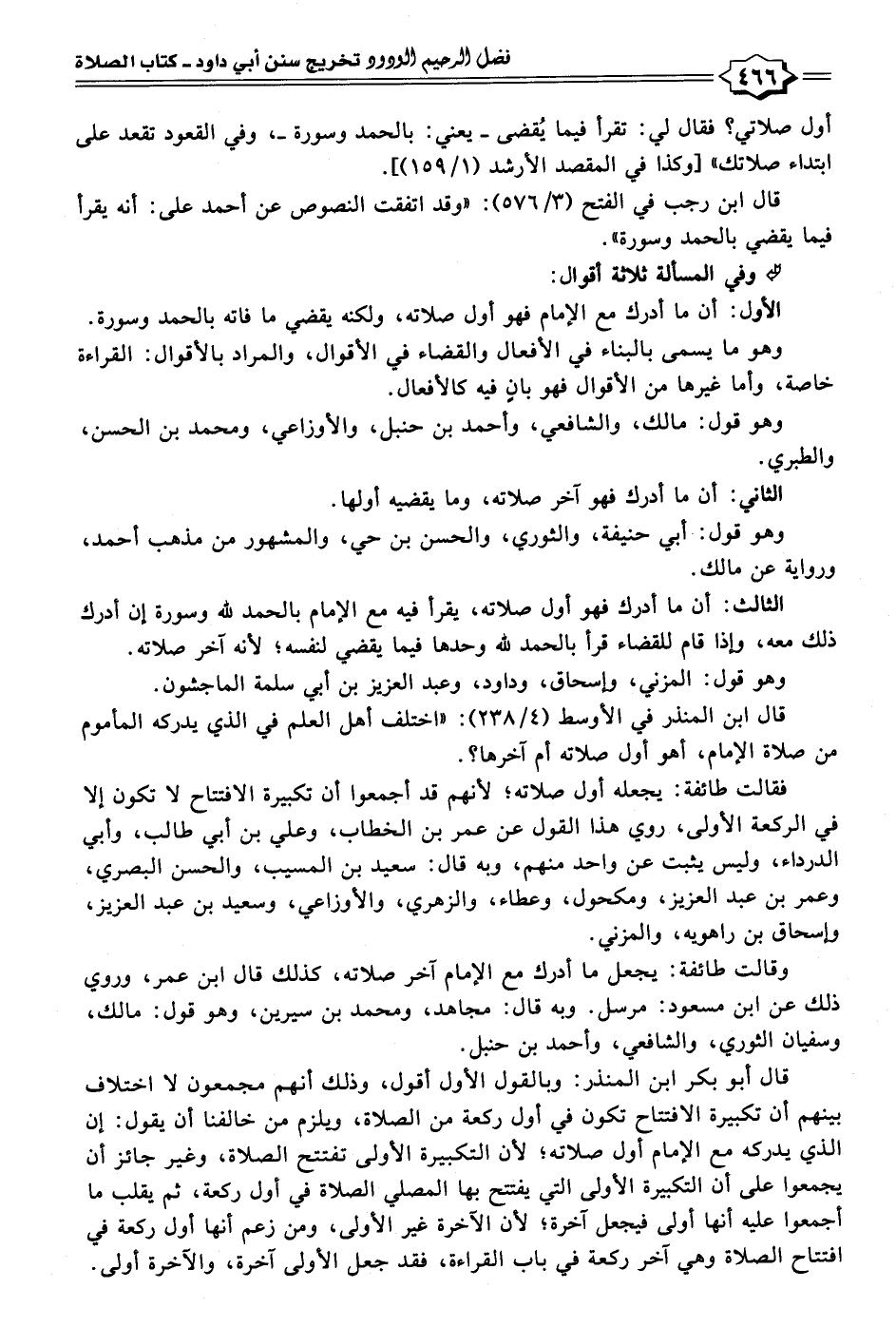 أول صلاتي؟ فقال لي: تقرأ فيما يُقضى -يعني: بالحمد وسورة-، وفي القعود تقعد على ابتداء صلاتك" [وكذا في المقصد الأرشد (١/ ١٥٩)].