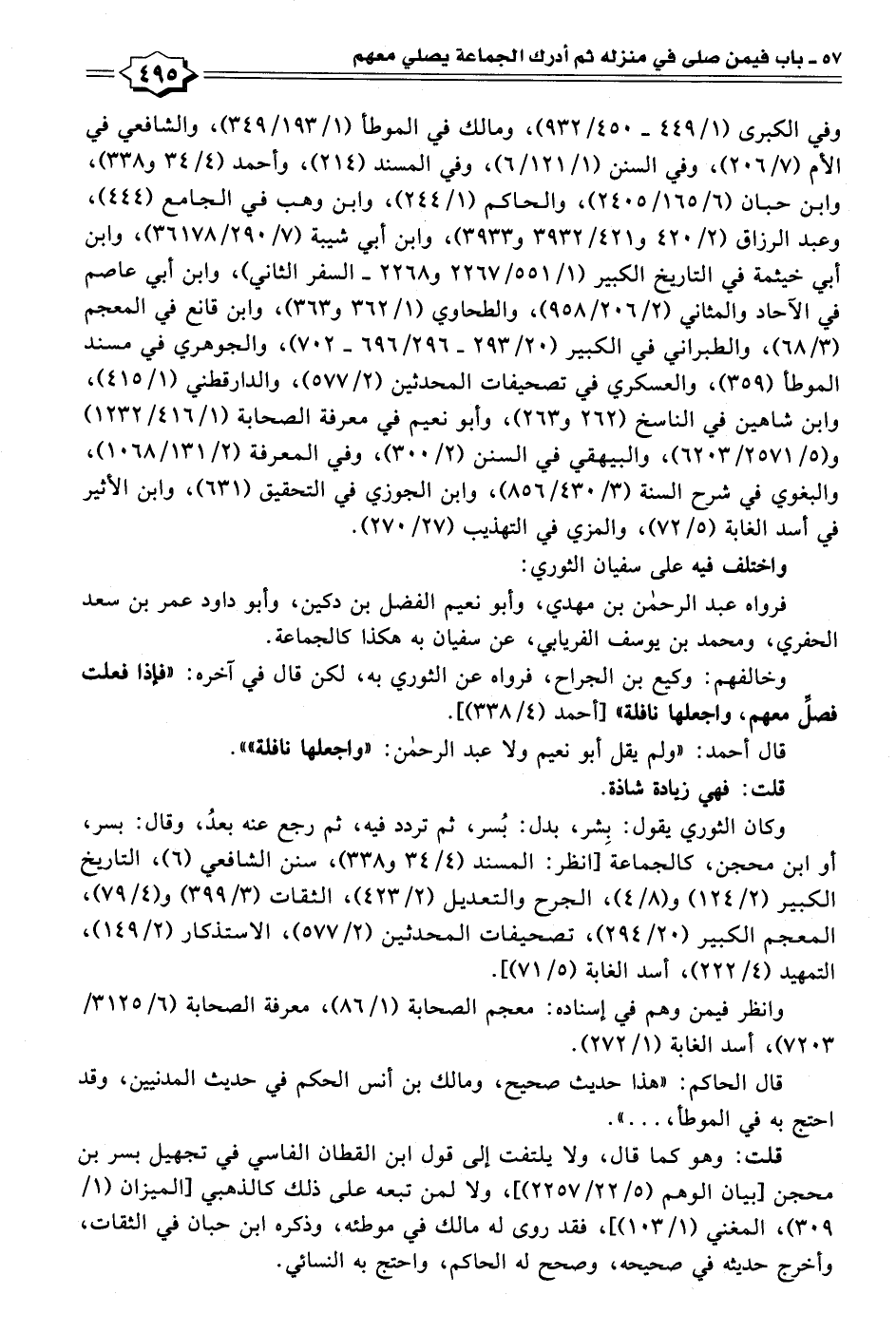 وفي الكبرى (١/ ٤٤٩ - ٤٥٠/ ٩٣٢)، ومالك في الموطأ (١/ ١٩٣/ ٣٤٩)، والشافعي في الأم (٧/ ٢٠٦)، وفي السنن (١/ ١٢١/ ٦)، وفي المسند (٢١٤)، وأحمد (٤/ ٣٤ و ٣٣٨)، وابن حبان (٦/ ١٦٥/ ٢٤٠٥)، والحاكم (١/ ٢٤٤)، وابن وهب في الجامع (٤٤٤)، وعبد الرزاق (٢/ ٤٢٠ و ٤٢١/ ٣٩٣٢ و ٣٩٣٣)، وابن أبي شيبة (٧/ ٢٩٠/ ٣٦١٧٨)، وابن أبي خيثمة في التاريخ الكبير (١/ ٥٥١/ ٢٢٦٧ و ٢٢٦٨ - السفر الثاني)، وابن أبي عاصم في الآحاد والمثاني (٢/ ٢٠٦/ ٩٥٨)، والطحاوي (١/ ٣٦٢ و ٣٦٣)، وابن قانع في المعجم (٣/ ٦٨)، والطبراني في الكبير (٢٠/ ٢٩٣ - ٢٩٦/ ٦٩٦ - ٧٠٢)، والجوهري في مسند الموطأ (٣٥٩)، والعسكري في تصحيفات المحدثين (٢/ ٥٧٧)، والدارقطني (١/ ٤١٥)، وابن شاهين في الناسخ (٢٦٢ و ٢٦٣)، وأبو نعيم في معرفة الصحابة (١/ ٤١٦/ ١٢٣٢) و (٥/ ٢٥٧١/ ٦٢٠٣)، والبيهقي في السنن (٢/ ٣٠٠)، وفي المعرفة (٢/ ١٣١/ ١٠٦٨)، والبغوي في شرح السنة (٣/ ٤٣٠/ ٨٥٦)، وابن الجوزي في التحقيق (٦٣١)، وابن الأثير في أسد الغابة (٥/ ٧٢)، والمزي في التهذيب (٢٧/ ٢٧٠).