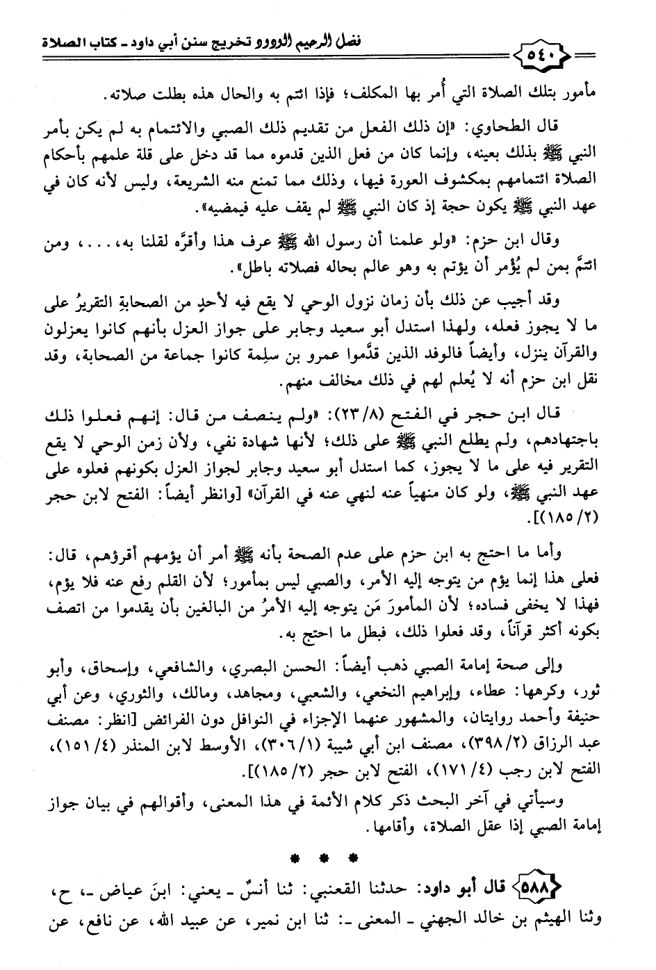 وإلى صحة إمامة الصبي ذهب أيضًا: الحسن البصري، والشافعي، وإسحاق، وأبو ثور، وكرهها: عطاء، وإبراهيم النخعي، والشعبي، ومجاهد، ومالك، والثوري، وعن أبي حنيفة وأحمد روايتان، والمشهور عنهما الإجزاء في النوافل دون الفرائض [انظر: مصنف عبد الرزاق (٢/ ٣٩٨)، مصنف ابن أبي شيبة (١/ ٣٠٦)، الأوسط لابن المنذر (٤/ ١٥١)، الفتح لابن رجب (٤/ ١٧١)، الفتح لابن حجر (٢/ ١٨٥)].