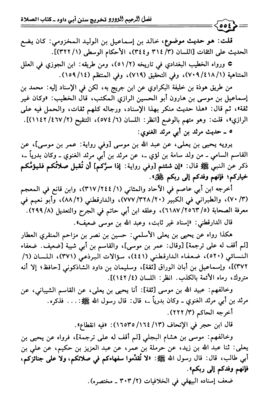 قلت: هو حديث موضوع، خالد بن إسماعيل بن الوليد المخزومي: كان يضع الحديث على الثقات [اللسان (٣/ ٣١٤ و ٣٤٤)، الأحكام الوسطى (١/ ٣٢٢)].