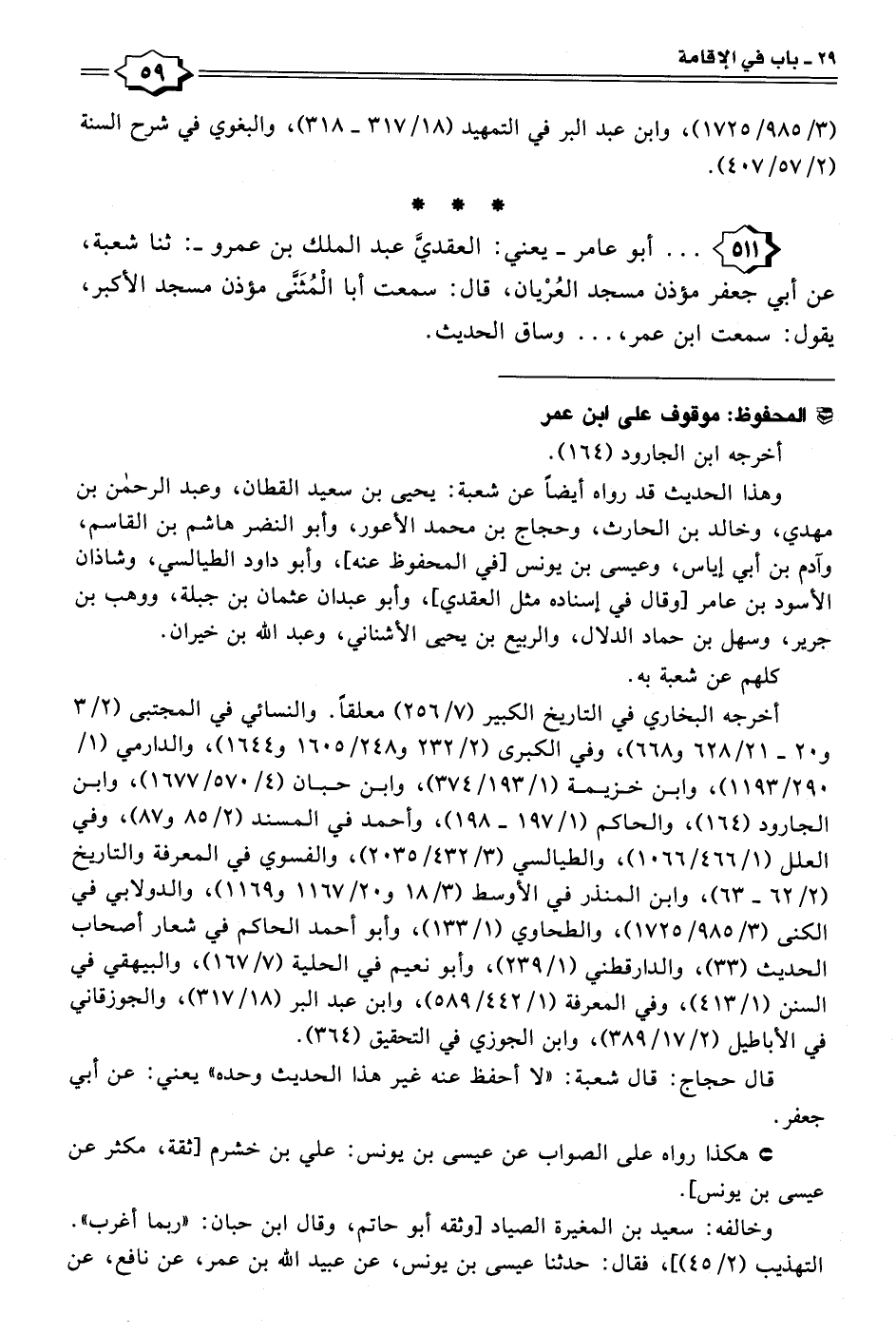 ٥١١ - . . . أبو عامر -يعني: العقديَّ عبد الملك بن عمرو-: ثنا شعبة، عن أبي جعفر مؤذن مسجد العُرْيان، قال: سمعت أبا الْمُثَنَّى مؤذن مسجد الأكبر، يقول: سمعت ابن عمر، ... وساق الحديث.