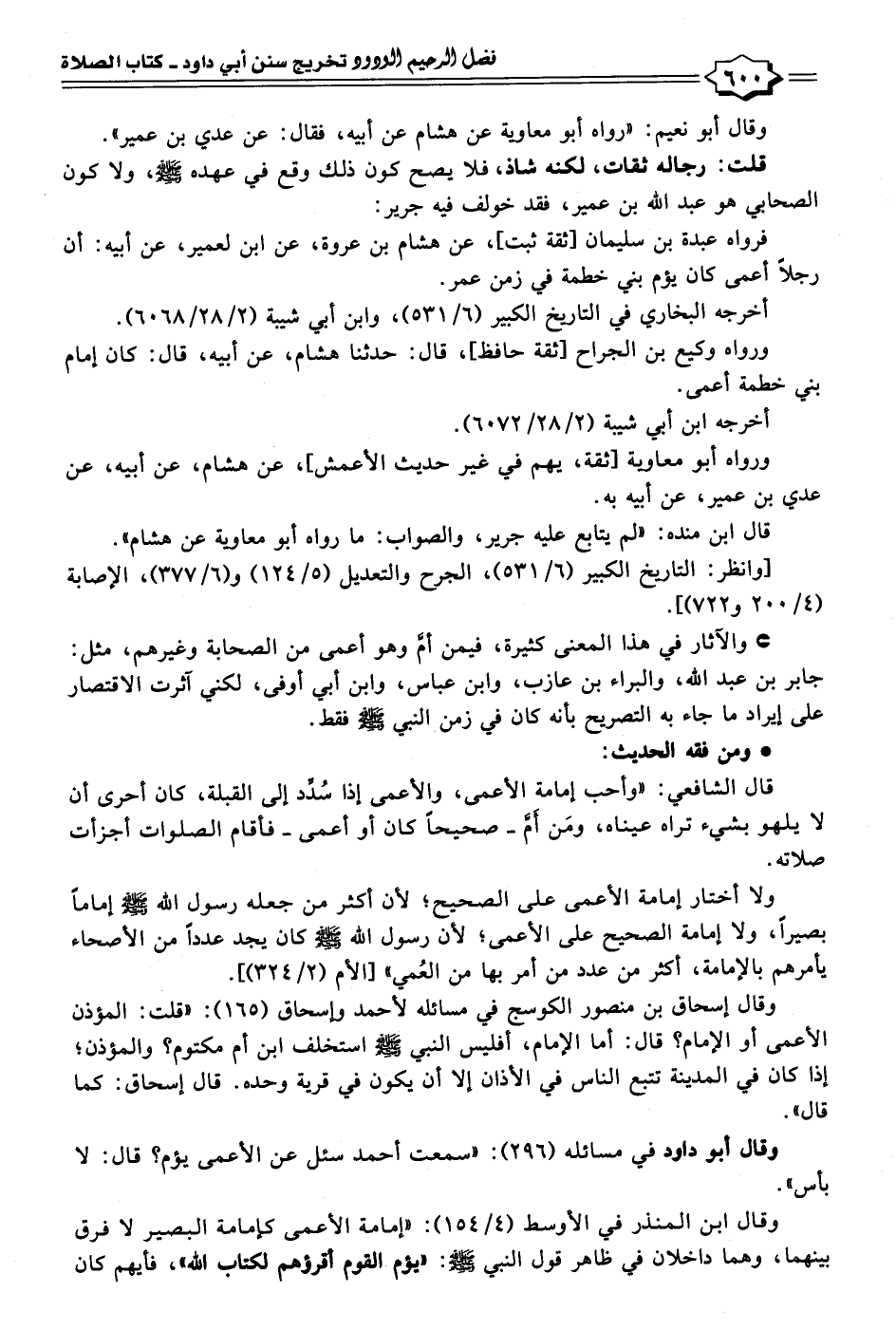 • والآثار في هذا المعنى كثيرة، فيمن أمَّ وهو أعمى من الصحابة وغيرهم، مثل: جابر بن عبد الله، والبراء بن عازب، وابن عباس، وابن أبي أوفى، لكني آثرت الاقتصار على إيراد ما جاء به التصريح بأنه كان في زمن النبي - صلى الله عليه وسلم - فقط.