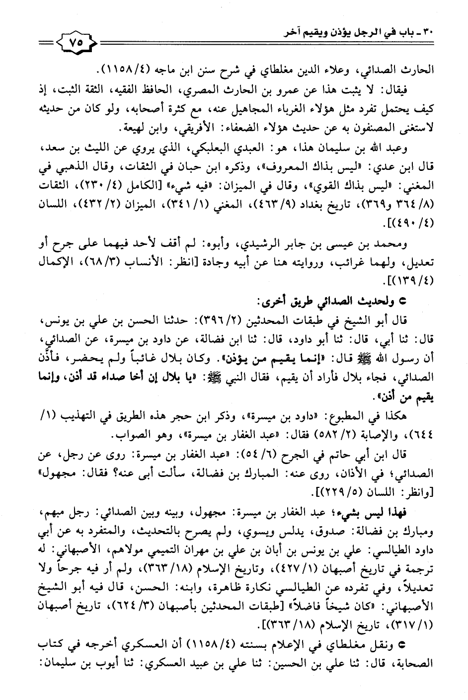 الحارث الصدائي، وعلاء الدين مغلطاي في شرح سنن ابن ماجه (٤/ ١١٥٨).