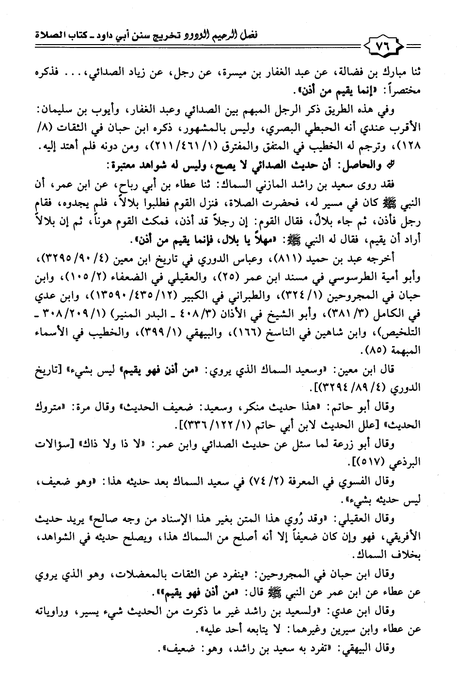 وقال أبو زرعة لما سئل عن حديث الصدائي وابن عمر: "لا ذا ولا ذاك" [سؤالات البرذعي (٥١٧)].