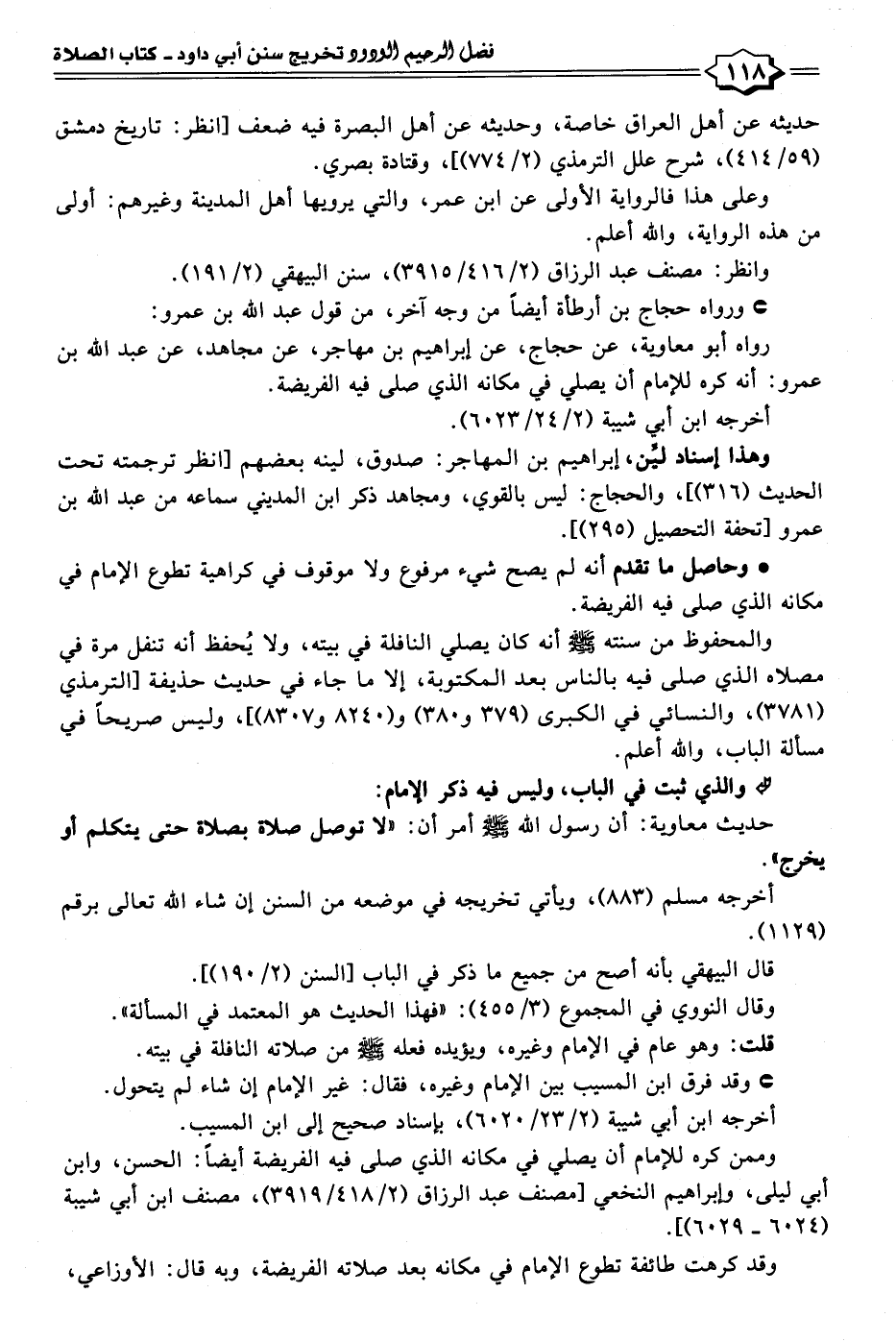 • وحاصل مما تقدم أنه لم يصح شيء مرفوع ولا موقوف في كراهية تطوع الإمام في مكانه الذي صلى فيه الفريضة.