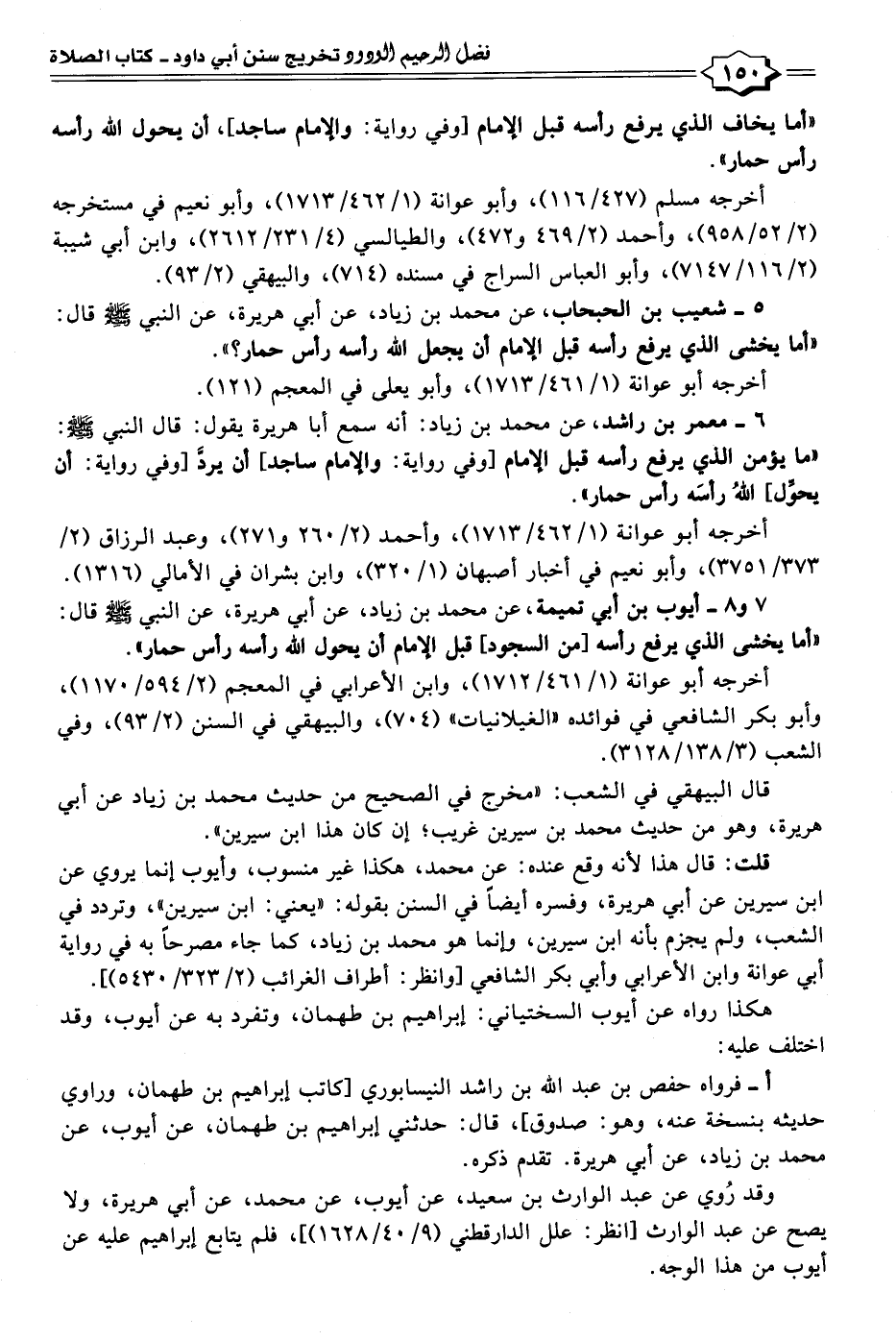 ٥ - شعيب بن الحبحاب، عن محمد بن زياد، عن أبي هريرة، عن النبي - صلى الله عليه وسلم - قال: "أما يخشى الذي يرفع رأسه قبل الإمام أن يجعل الله رأسه رأس حمار؟ ".