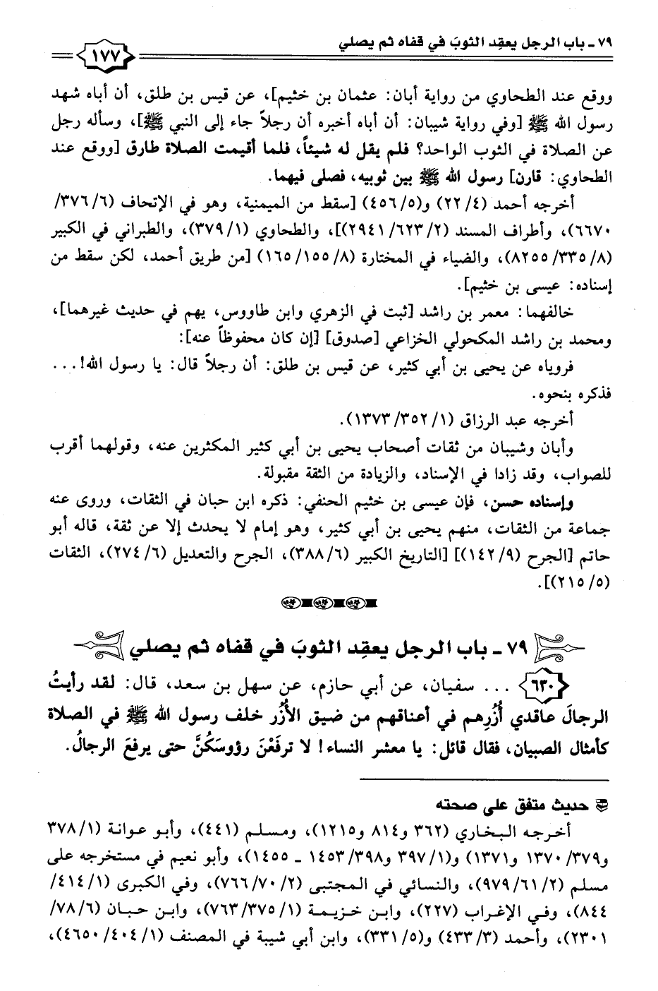 ٧٩ - باب الرجل يعقِد الثوبَ في قفاه ثم يصلي