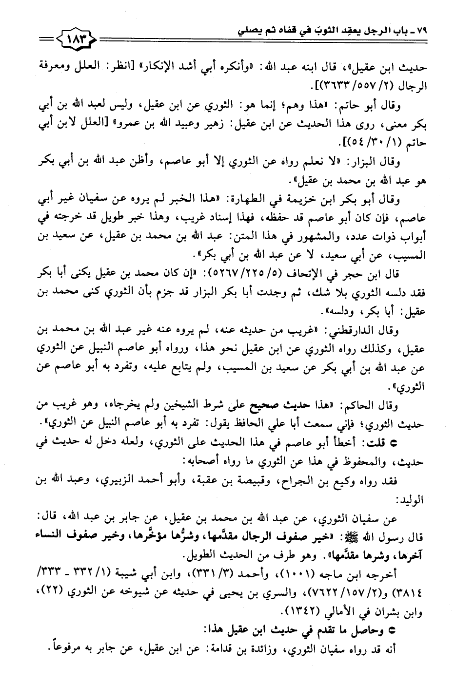 وقال أبو حاتم: "هذا وهم؟ إنما هو: الثوري عن ابن عقيل، وليس لعبد الله بن أبي بكر معنى، روى هذا الحديث عن ابن عقيل: زهير وعبيد الله بن عمرو" [العلل لابن أبي حاتم (١/ ٣٠/ ٥٤)].