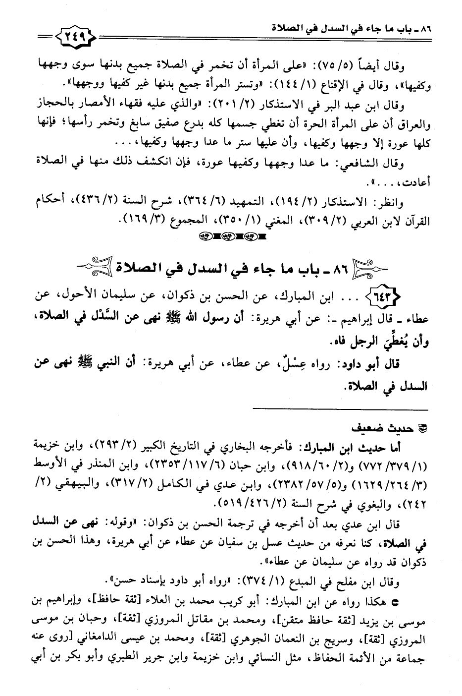 ٦٤٣ - . . . ابن المبارك، عن الحسن بن ذكوان، عن سليمان الأحول، عن عطاء -قال إبراهيم-: عن أبي هريرة: أن رسول الله - صلى الله عليه وسلم - نهى عن السَّدْل في الصلاة، وأن يُغطِّيَ الرجل فاه.
