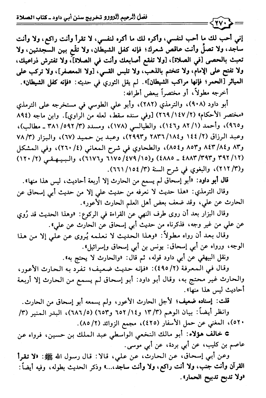 وقال الترمذي: "هذا حديث لا نعرفه من حديث علي إلا من حديث أبي إسحاق عن الحارث عن علي، وقد ضعف بعض أهل العلم الحارث الأعور".