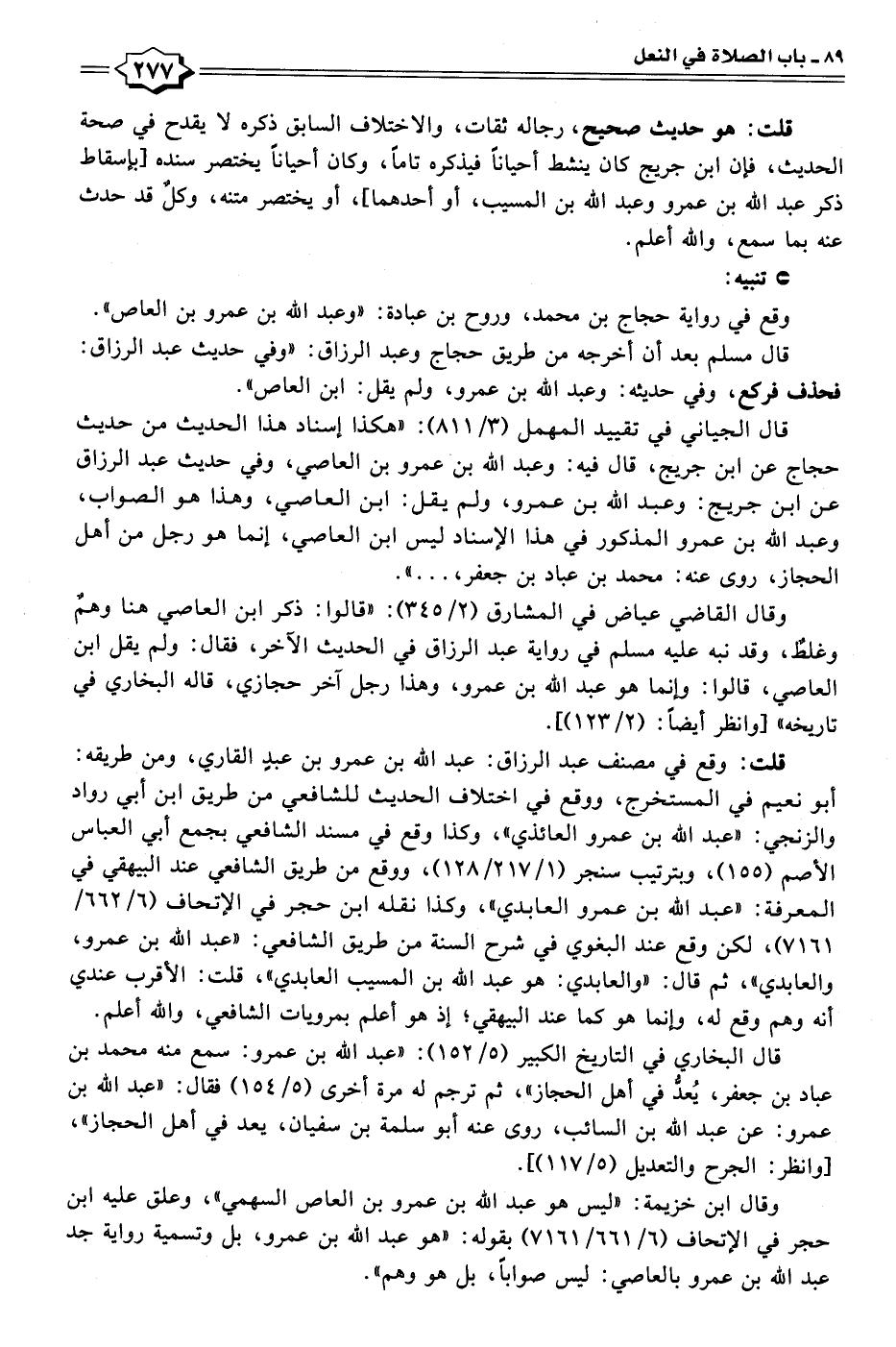 قال مسلم بعد أن أخرجه من طريق حجاج وعبد الرزاق: "وفي حديث عبد الرزاق: فحذف فركع، وفي حديثه: وعبد الله بن عمرو، ولم يقل: ابن العاص".
