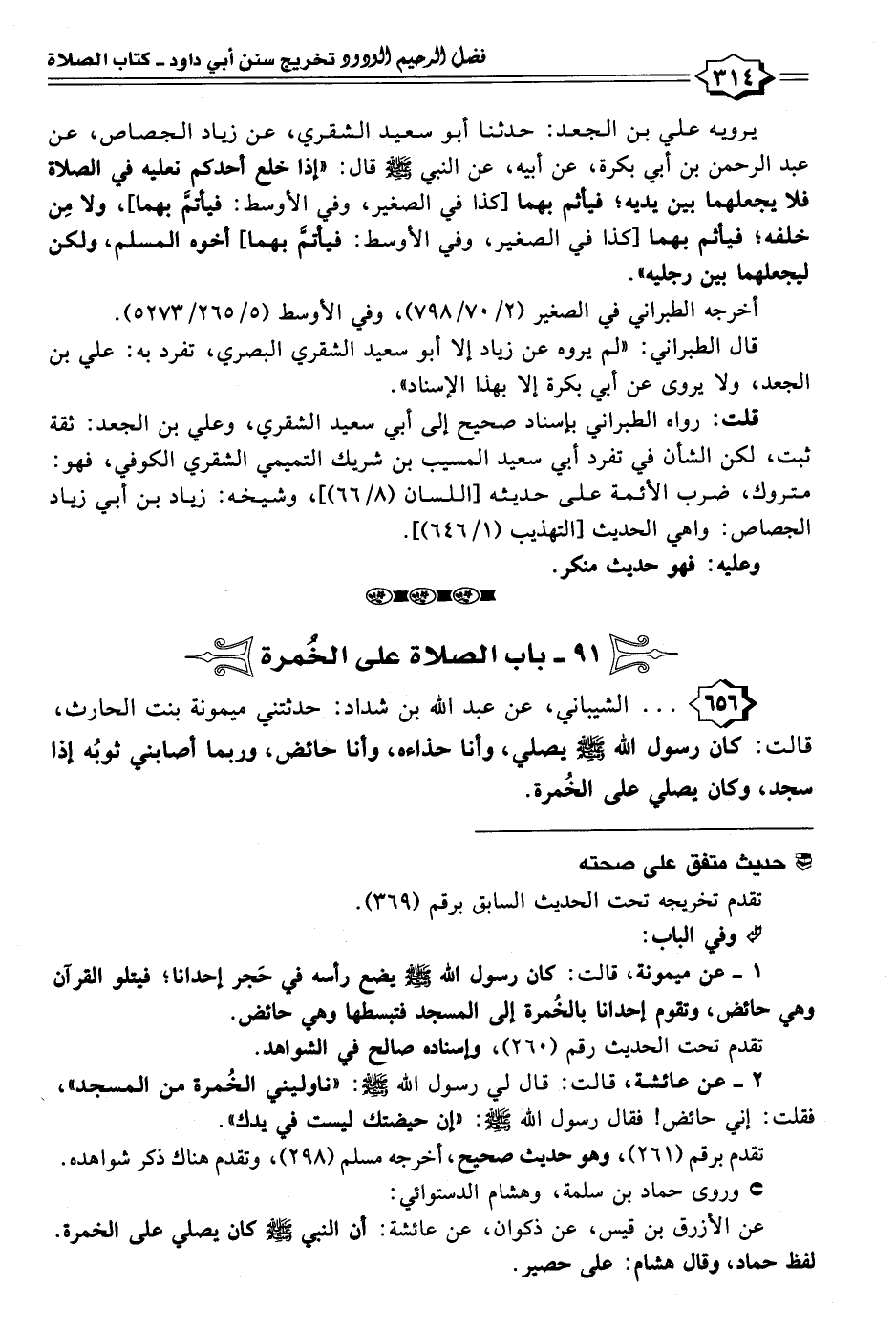 ٩١ - باب الصلاة على الخُمرة