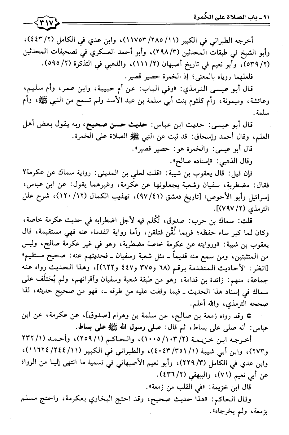 • وقد رواه زمعة بن صالح، عن سلمة بن وهرام [صدوق]، عن عكرمة، عن ابن عباس: أنه صلى على بساط، ثم قال: صلى رسول الله - صلى الله عليه وسلم - على بساط.