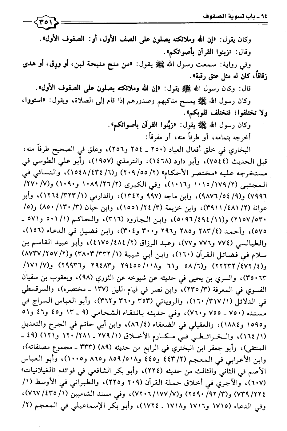 وكان يقول: "إن الله وملائكته يصلون على الصف الأول، أو: الصفوف الأول".