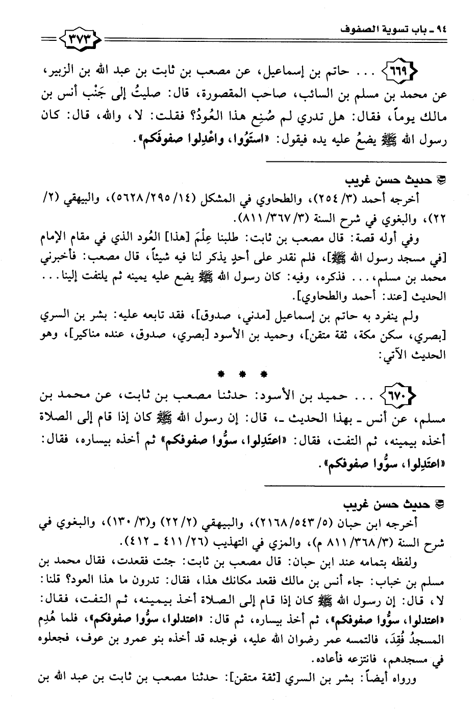 ٦٧٠ - . . . حميد بن الأسود: حدثنا مصعب بن ثابت، عن محمد بن مسلم، عن أنس -بهذا الحديث-، قال: إن رسول الله - صلى الله عليه وسلم - كان إذا قام إلى الصلاة أخذه بيمينه، ثم التفت، فقال: "اعتَدِلوا، سوُّوا صفوفكم" ثم أخذه بيساره، فقال: "اعتَدِلوا، سوُّوا صفوفكم".